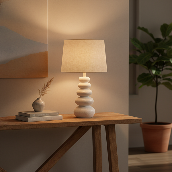 A handcrafted ceramic base with a linen shade adds warmth and...